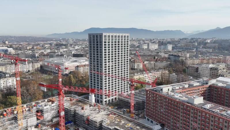 Quai Vernets, ce nouveau quartier au bord de l’Arve, à la place de l’ancienne caserne, franchit une nouvelle étape. La tour Atura fignole ses finitions. 86 mètres de haut, pour autant de mètres de fondations, 256 logements du 3 au 6 pièces sur 26 étages. «Les loyers pour les trois pièces commencent à 1650 CHF et 3670 CHF pour un six pièces charges comprises» détaille Alice Kha, gestionnaire d’actifs chez Swiss Life.